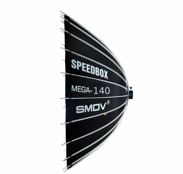 SMDV Speedbox Mega-140 Softbox 140cm Silver Bowens Mount Az SMDV Speedbox Mega-140 softbox Silver egy 24 oldalas softbox, 140 centiméter átmérőjű.